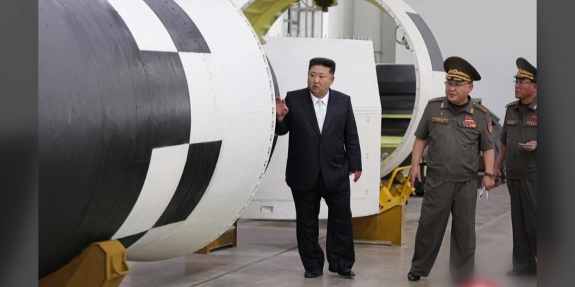 North Korean leader Kim Jong-un oversaw an on-site test of a solid-fuel engine for a new intercontinental ballistic missile, which uses composite carbon fiber materials. The Korean Central News Agency stated it was the final test in the development process and even unveiled the maximum thrust, which is higher than the previously announced figure.