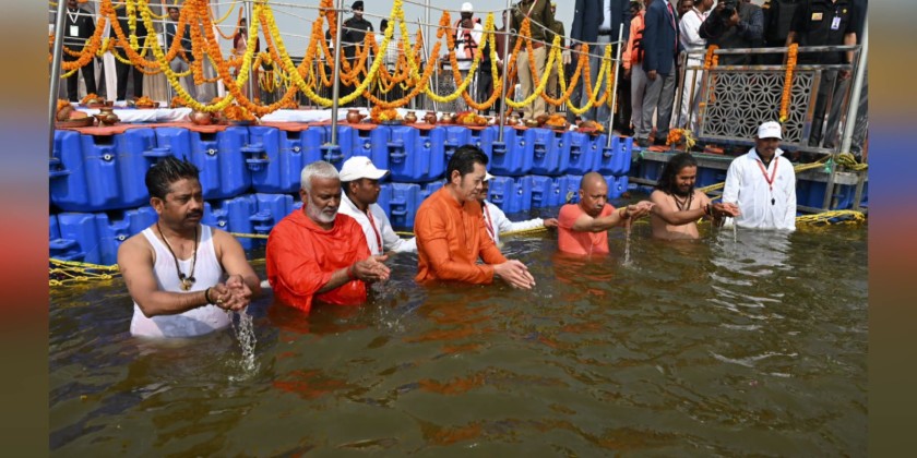 The King of Bhutan, Jigme Khesar Namgyel Wangchuck, visited the Maha Kumbh on Tuesday and took a holy dip at the Triveni Sangam, marking a significant moment at the religious gathering.