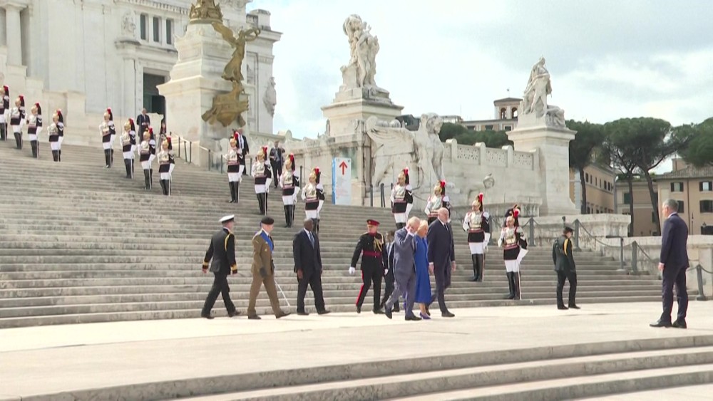 King Charles III lays wreath to fallen soldiers during state visit to Rome