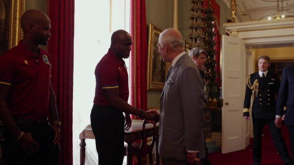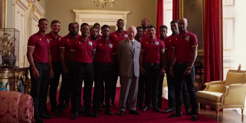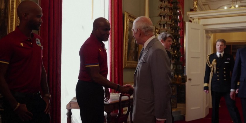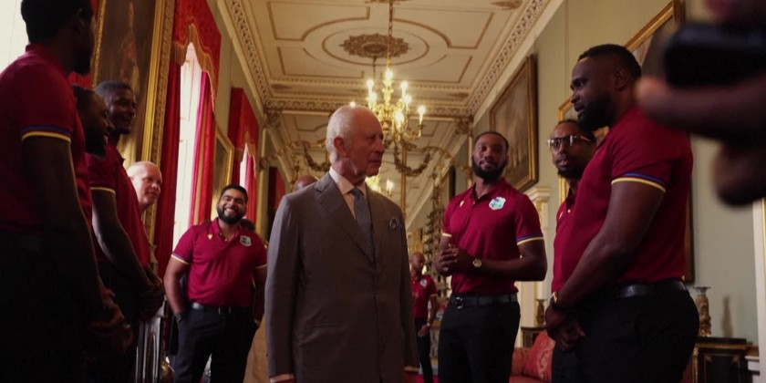 King Charles III meets the West Indies' cricket team in Buckingham Palace ahead of their three-match Test series against England at Lord's Cricket Ground.
