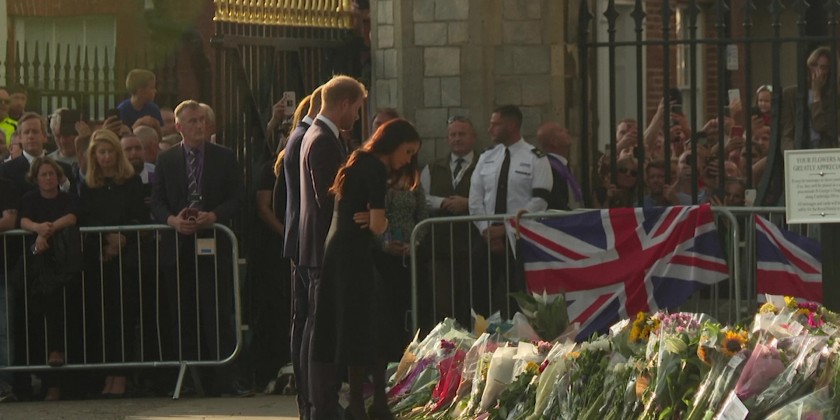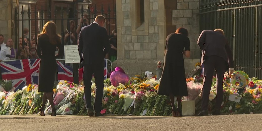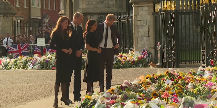 The four spent around 40 minutes speaking to mourners and were at times cheered by the crowds. Their walkabout was the first time the princes appeared together in public since March 2020.