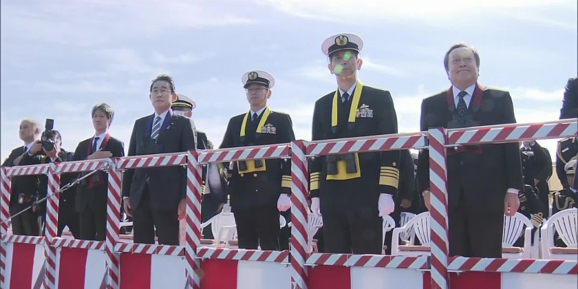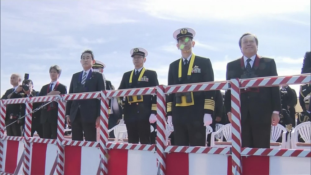 Japan’s Prime Minister Fumio Kishida said at an international fleet review Sunday that his country urgently needs to strengthen its military capabilities.