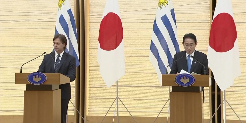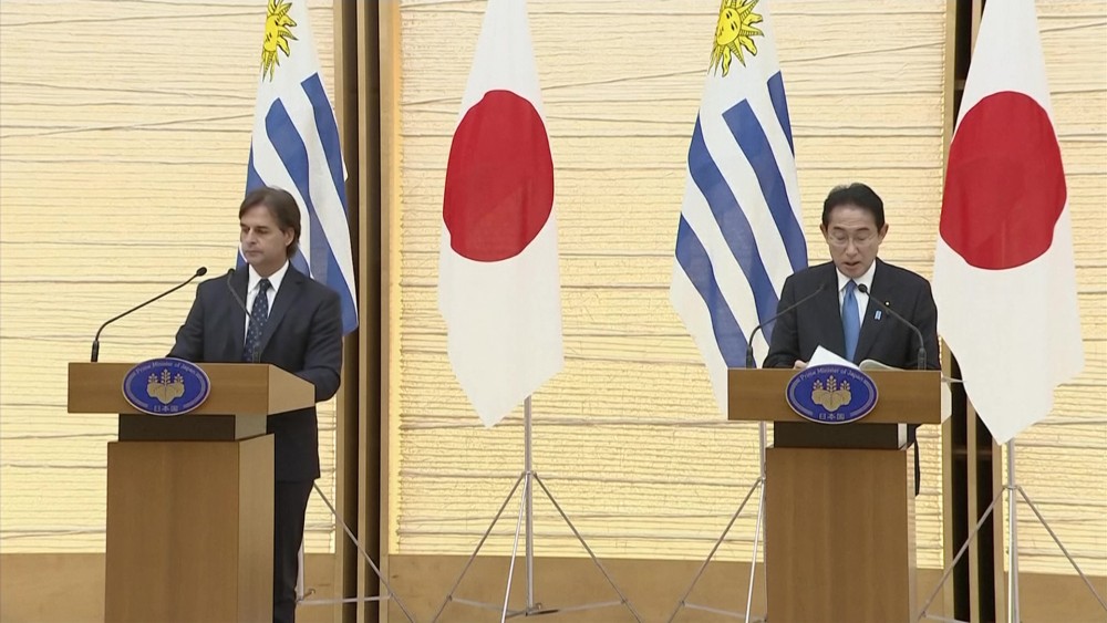 Japan's Prime Minister Fumio Kishida met Uruguay's President Luis Lacalle Pou in Tokyo on Thursday. The two leaders discussed how to further strengthen bilateral relations with a view to the next 100 years, as last year marked the 100th anniversary of diplomatic relations between Japan and Uruguay.