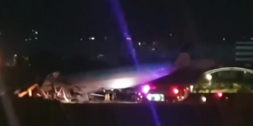A statement from the South Korea-based airline said that the plane attempted to land twice in poor weather, and on the third attempt overran the runway. The airline said it's trying to find the cause of the incident.