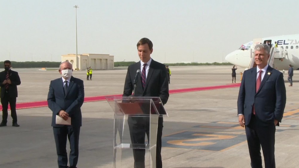 White House special adviser Jared Kushner thanked the United Arab Emirates and Saudi Arabia for helping to complete a "truly historic flight" from Israel to the UAE. A Star of David-adorned El Al plane flew from Israel to the United Arab Emirates on Monday, carrying a high-ranking American and Israeli delegation to Abu Dhabi in the first-ever direct commercial passenger flight between the two countries.