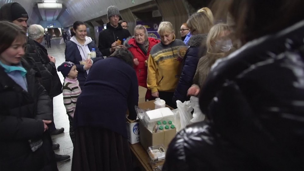 Hundreds of thousands of civilians have sought safety at night in Kyiv's subway system and other makeshift shelters across the country. Volunteers were some of the few allowed to move across Kyiv to deliver food to those couldn't stock up in advance and had to shelter without food. Kyiv residents and businesses have been taking supplies to a centre within the city run by volunteers to help the war effort. The actions come as Russian troops continued their advance toward the capital, a city of nearly 3 million.