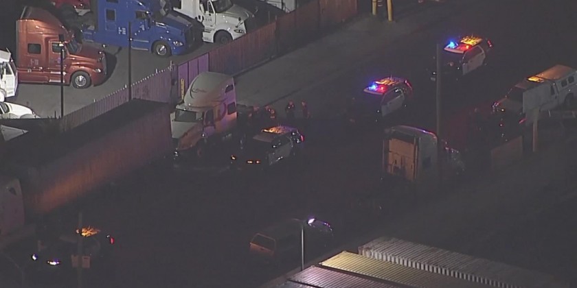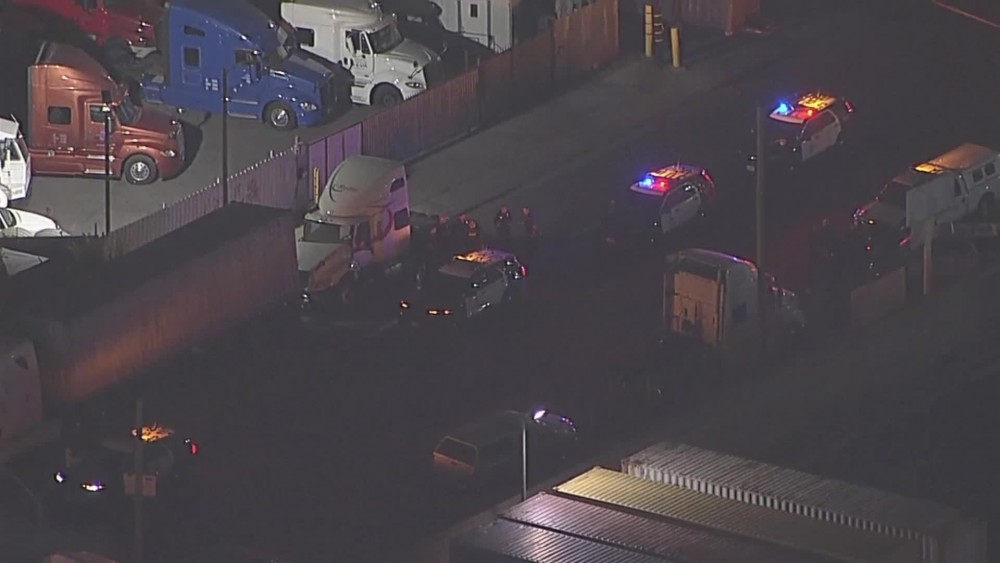 Los Angeles police officers shot and killed a man they say was armed with handguns and had crashed a stolen truck and fled, authorities said. Officers were following the stolen truck in the Wilmington neighborhood of Los Angeles around 3:30 a.m. when the driver crashed and ran from the scene, the Los Angeles Police Department said on Twitter.