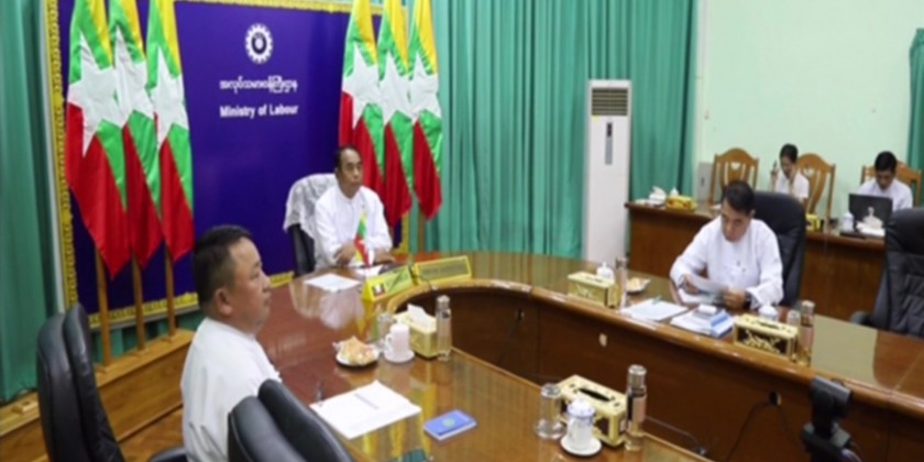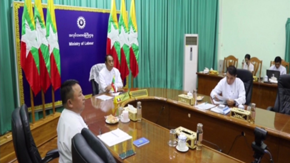 Union Minister for Labor U Myint Naung attended a work coordination meeting with the officials from Myanmar Overseas Employment Agencies Federation (MOEAF) at the meeting hall of the Ministry office on Thursday.