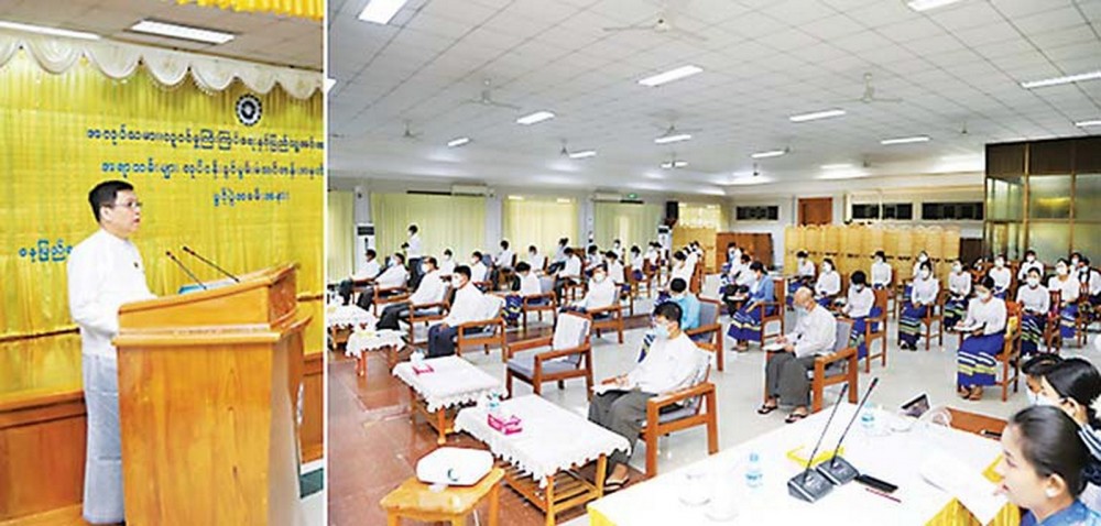 The Ministry of Labour, Immigration and Population launched the 3rd refresher course this year for labour affairs officers on Monday. In the course opening ceremony at the Ministry, Union Minister U Myint Kyaing said that government employees need to follow the ethics and make efforts to earn trust from the government, employers and employees. He also explained the ongoing political situation and relations with the International Labour Organization. 45 officers from the Ministry joined this 1-week refresher course.