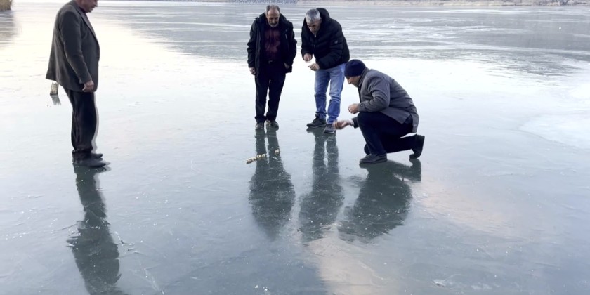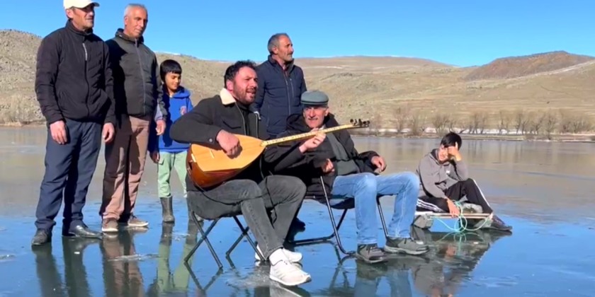 Eastern Anatolia’s second-largest lake has partially frozen, allowing locals to step onto the ice and enjoy traditional winter activities despite the bitter cold. Folk songs echoed across the frozen surface as people formed halay dances, while the traditional games were played on the ice.