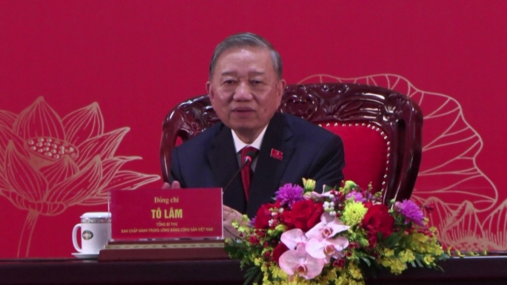 General Secretary To Lam of Viet Nam's ruling Communist Party held a press conference at the National Convention Centre in Hanoi after being "unanimously" reelected, confirming the former security enforcer as the country's top leader for the next five years and backing his vision for growth-oriented change.