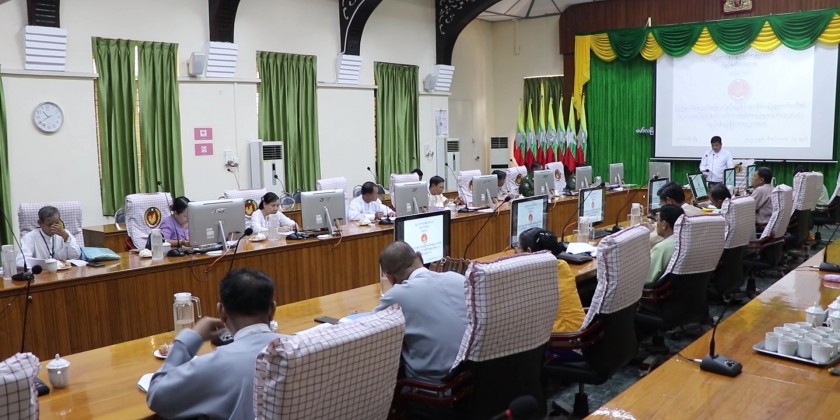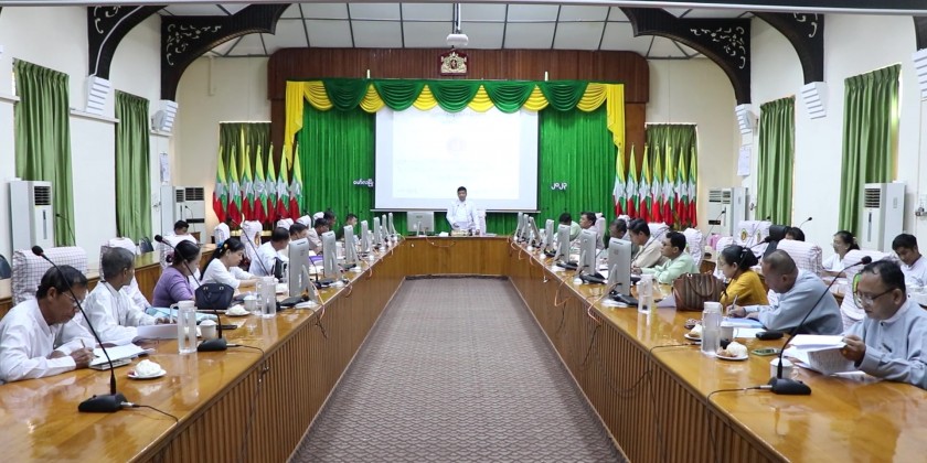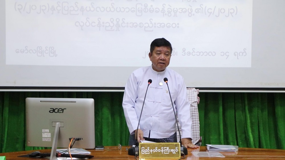 Mon State Chief Minister U Aung Kyi Thein on Thursday addressed the work coordination meeting (3/2023) of the Mon State Vacant, Fallow and Virgin Land Management Committee and work coordination meeting (4/2023) of the Mon State farmland management committee at the state government office.