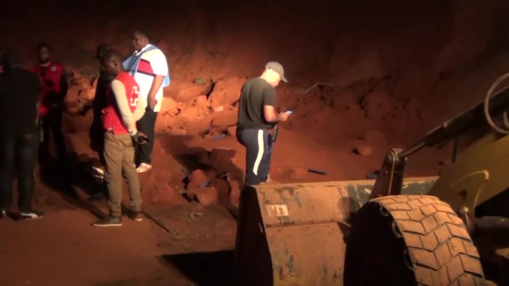 A landslide during a funeral ceremony in Cameroon's capital on Sunday has left at least 14 people dead, the regional governor said. Dozens of others remained missing as rescue crews continued digging through the rubble with flashlights.