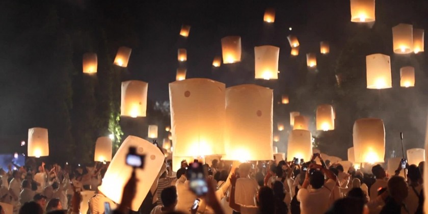 People released lanterns, which symbolize enlightenment and peace, to mark the conclusion of Vesak celebrations at Indonesia's Borobudur Temple, the largest Buddhist temple in the world.