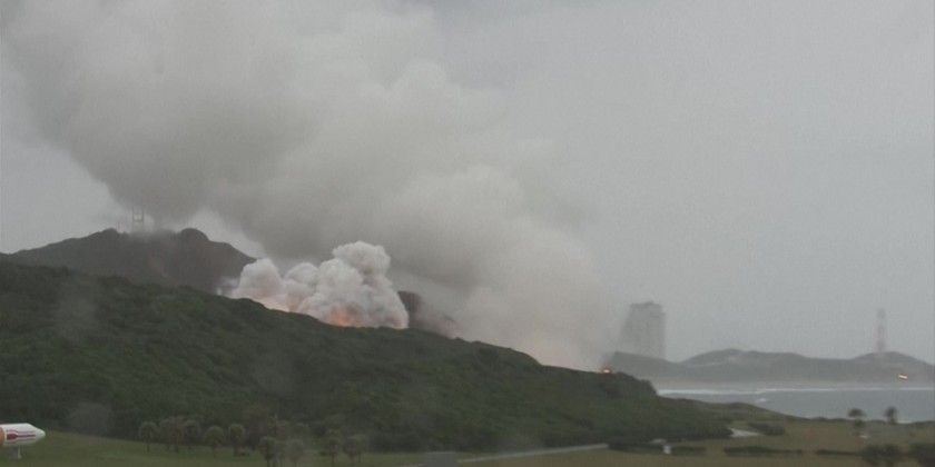 About 30 seconds later, a large explosion was heard, and what appeared to be something on fire flew toward the sea. The Sankei Shimbun reported that orange flames burst out from the rocket engine placed on a horizontal platform before the explosion.