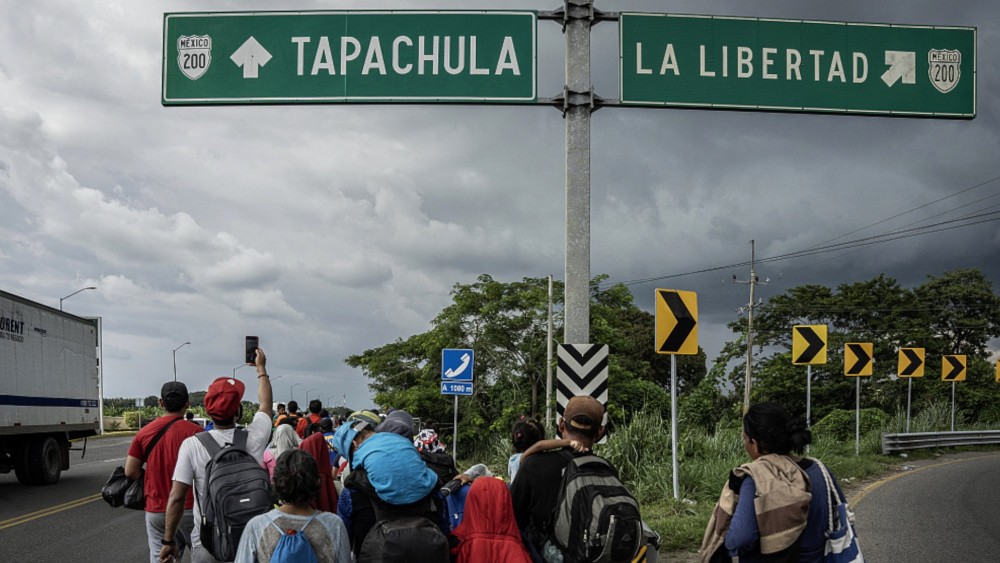 A large migrant caravan comprising about 5,000 migrants from Central America and Venezuela left southern Mexico for the U.S. Officials in the southern state of Chiapas said some 3,500 people set off on foot from the city of Tapachula near the Guatemalan border.