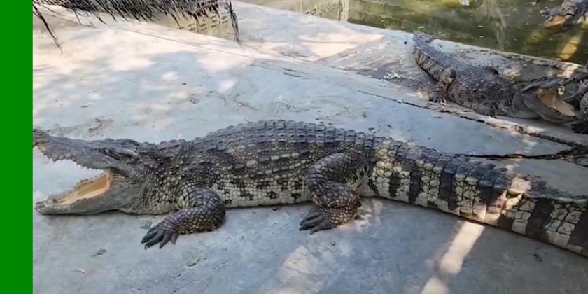 In Thailand, several large crocodiles escaped from a farm in Samut Sakhon province on Thursday and the largest one weighs over 100 kilograms. The reason for the crocodile escape was attributed to a damaged cement pond measuring 30 x 30 meters and 2 meters high, allowing the crocodiles to slip out and into nearby fish ponds.