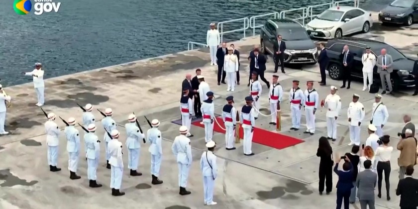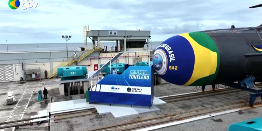 A ceremony is held at Brazil's ultra-modern naval base near Rio de Janeiro, where the submarine was built, the third of four planned conventional diesel attack submarines, with training, equipment, and technical assistance from France.