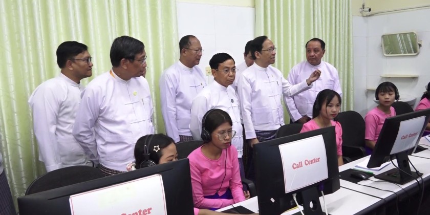 Later, the Union Minister, Nay Pyi Taw Council Chairman and officials visited the "EMS 192 Command and Control Center" at Nay Pyi Taw’s 1,000-bed People’s Hospital. They observed the operations, including a demonstration of patient rescue and transport using ambulances, and inspected the readiness of ambulance crews and equipment.