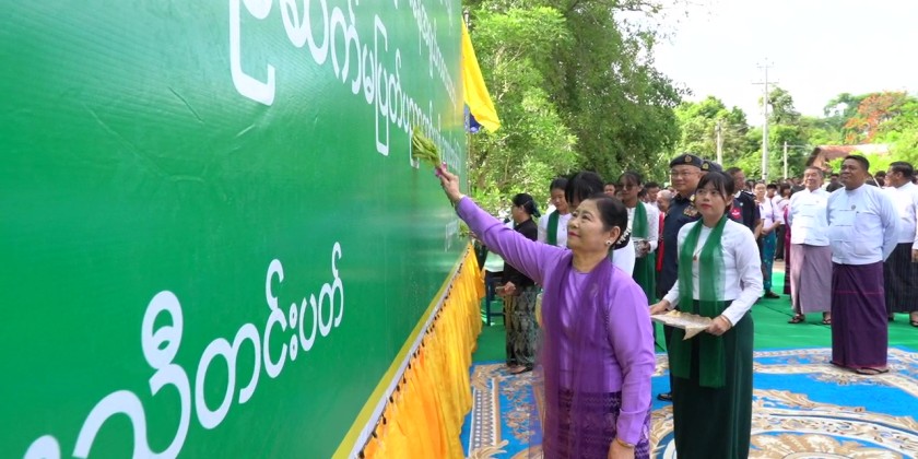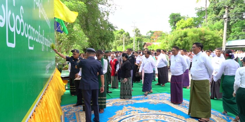 Magway Region Government Chief Minister U Tint Lwin together with regional-level officials attended the launching ceremony of the 2025–2026 School Enrollment Week Campaign Billboard Installation, held in front of the Magway Region Education Office, On May 15.