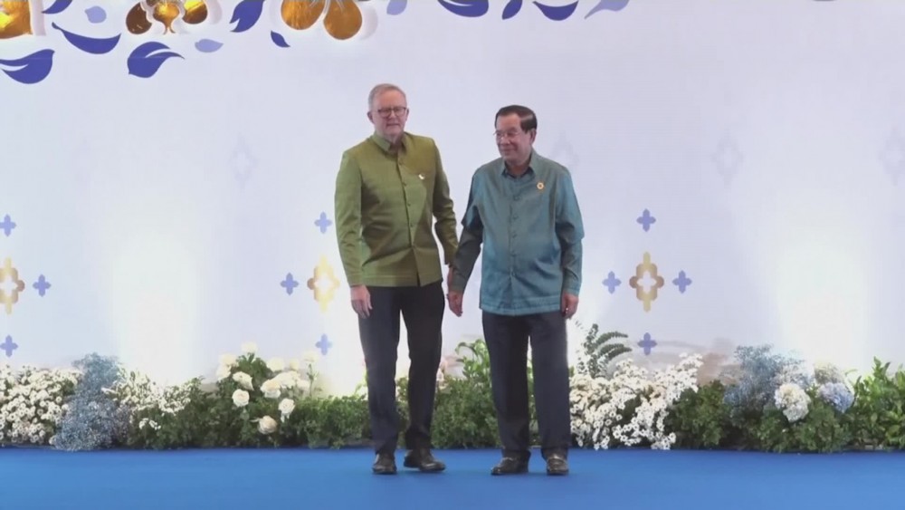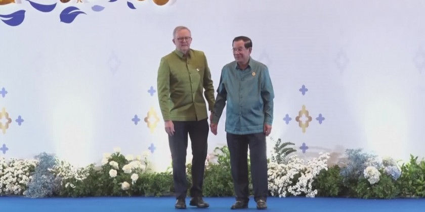 Leaders entered the venue for the dinner one-by-one and were greeted by Cambodian Prime Minister Hun Sen.