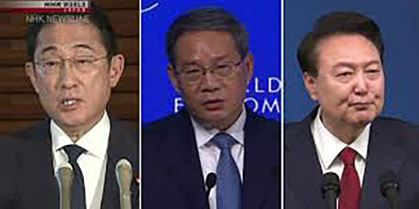 Japanese Prime Minister Kishida, Chinese Premier Li Qiang and South Korean President Yoon began their talks on Monday in Seoul.