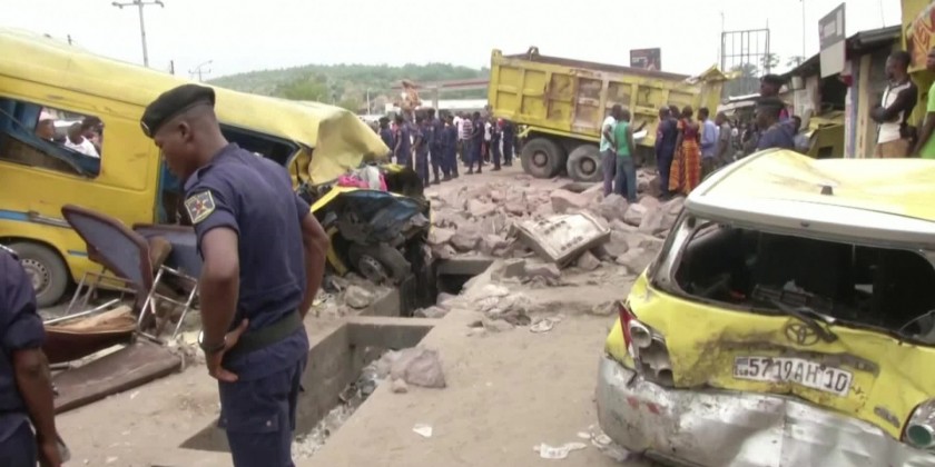 At least 14 people were killed and 30 others have been wounded in a road accident in Kinshasa on Sunday. The accident took place on a busy crossroad in the Congolese capital, when a truck carrying heavy construction materials rammed into several cars and people. Several vehicles, including small public buses, were crushed by the truck and the heavy rocks that fell out of the vehicle when it tipped over the edge of the road. Young children were among the dead. Hospital official say the death toll could rise. The cause of the accident was not immediately known.