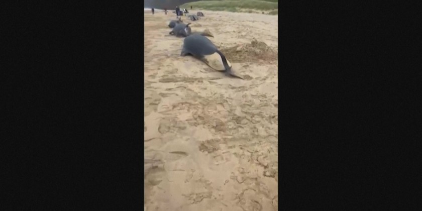 The cause of the stranding is unknown but it is thought the pod may have followed one of the females. Pilot whales are part of the dolphin family and are the cetacean species most susceptible to mass stranding.