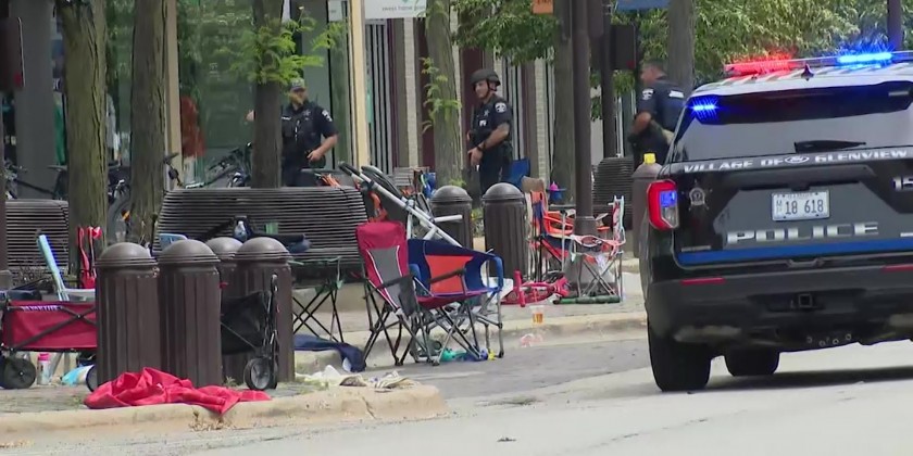 Police say at least six people are dead and 24 were wounded in a shooting at a July Fourth parade in a Chicago suburb, and officers are searching for a suspect who likely fired on the festivities from a rooftop.