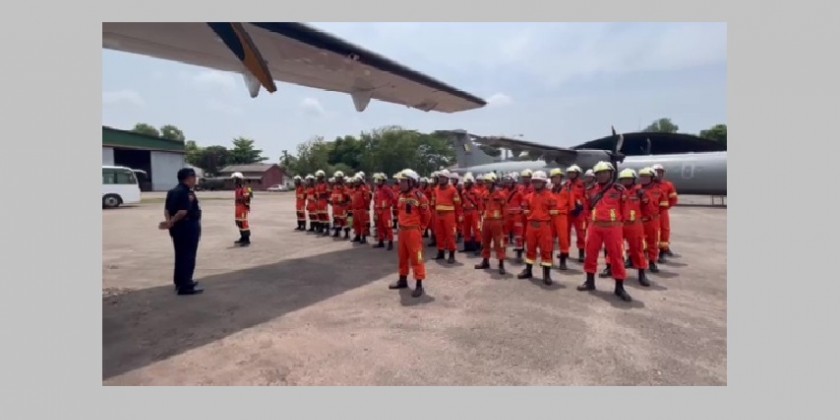 Myanmar fire brigade members left to Sittwe in the afternoon on Saturday with military aircrafts to carry out rescue and cleaning up tasks for the victims affected by the extremely severe cyclonic storm (Mocha) in Rakhine state.