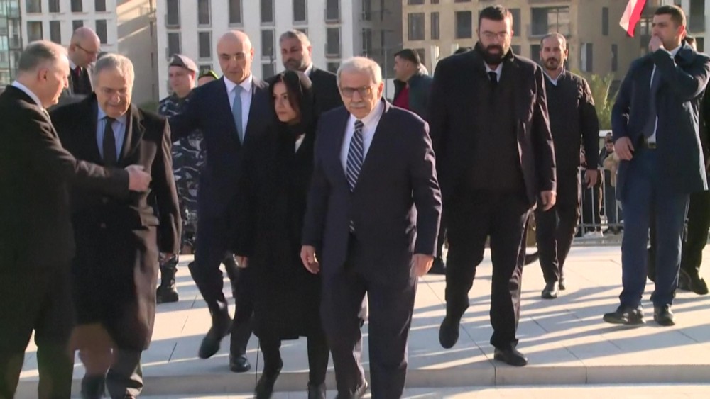 Lebanon's new Prime Minister Nawaf Salam prayed over the tomb of former prime minister Rafic Hariri on the 20th anniversary of his assassination in downtown Beirut.