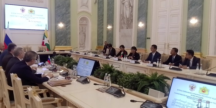 On 23rd of May, Myanmar delegation attended the bilateral meeting organized by the Prosecutor-General’s office in Moscow at the invitation of Mr. IGOR KRASNOV, Prosecutor-General of Russian Federation. They also joined the signing ceremony of Supplementary Manual of Convention and participated in the workshop for legal experts between the two nations.