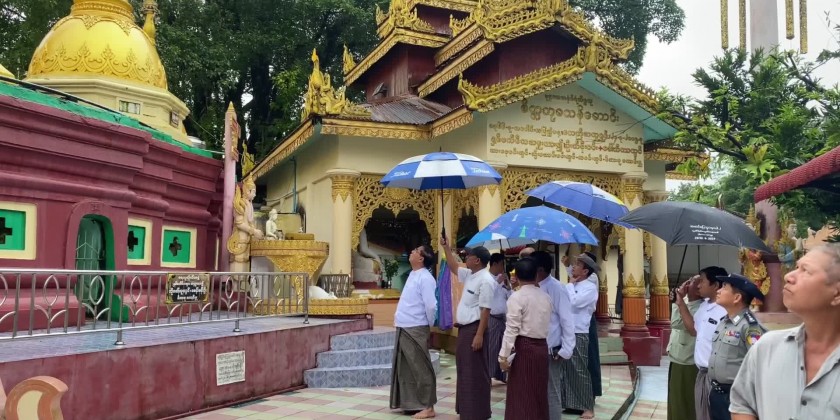 Subsequently, the Chief Minister and party paid homage to the historic Shwe Gulay Pagoda in Kalyani Ward and donated cash assistance for all-round renovation of the pagoda. They also inspected the damage areas of the pagoda caused by a lightning strike on 9th September and coordinated requirements on systematic restoration of the pagoda.