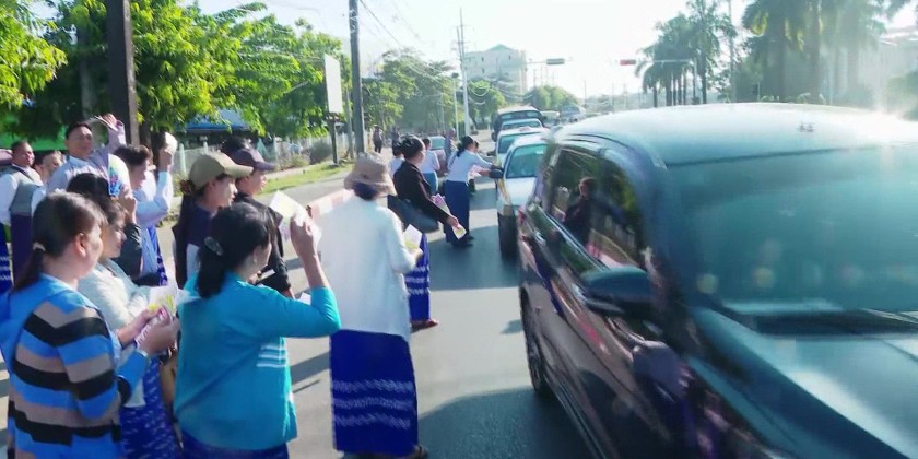 2025 Multiparty Democracy General Election awareness pamphlets were distributed across townships within Yangon Region on January 8. Yangon Region Chief Minister U Soe Thein, Union Election Commission Member Yangon Region officer U Aung Saw Win and concerned officials distributed the “Let’s Vote Together” pamphlets to the commuters, vehicles and citizens in front of Dawbon Market.