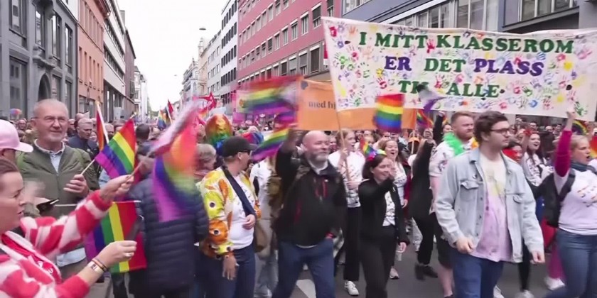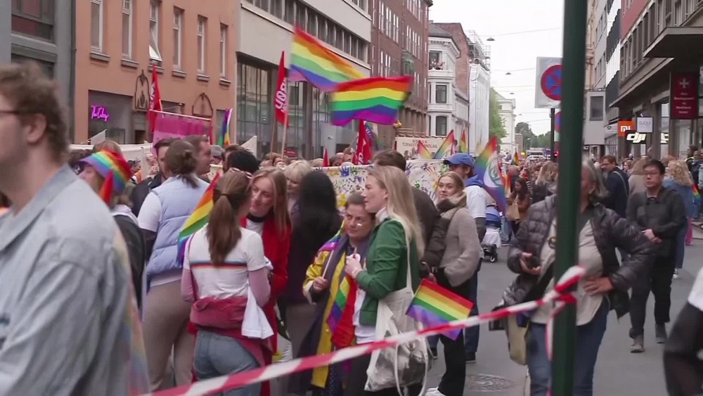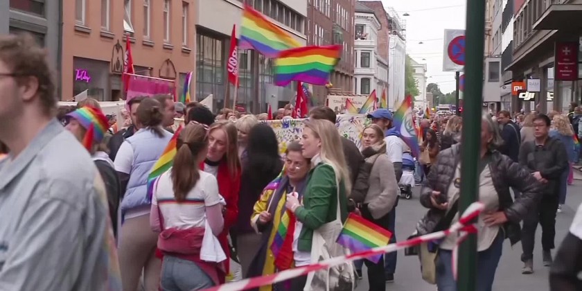 Marchers in "The Rainbow Train" passed the central Oslo nightlife district where a man identified as Zaniar Matapour shot and killed two men and injured several others outside the London Pub on June 25, just hours before the planned start of the Pride parade.