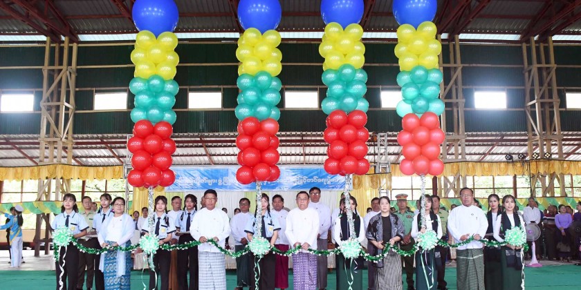 Following the opening, the Chief Minister and officials enjoyed performances by students from Basic Education High School No. 4 and Maha Shwe Gon Htoo မဟာရွှေဂုဏ်ထူး Private High School. The performances included singing, dancing, and a lively drum and pom-pom show. The region government then presented cash of honor.