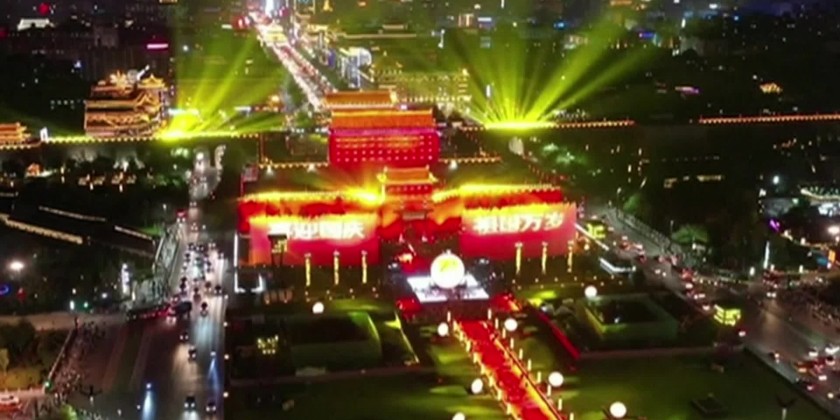 The light show in Xi'an covered many popular tourist destinations, shopping streets, and rows of skyscrapers. The festive mood will continue with more than 100 artistic performances such as the one held on the 600-year-old city wall set to be staged during the National Day holiday, which gets underway on Oct. 1. The light shows will last until Oct. 7, which is the end of the National Day.