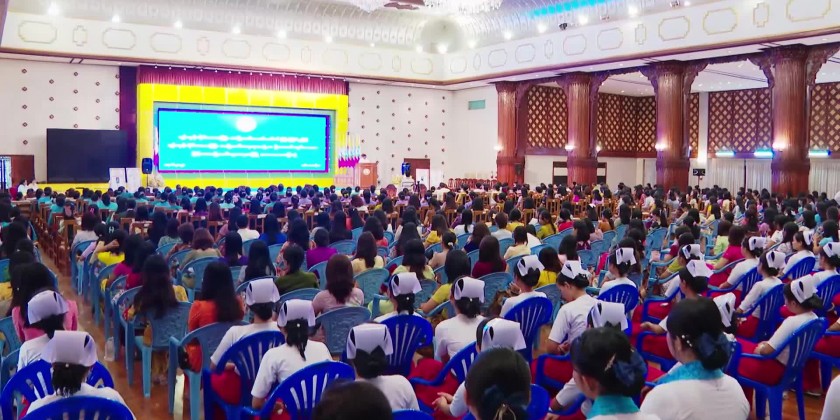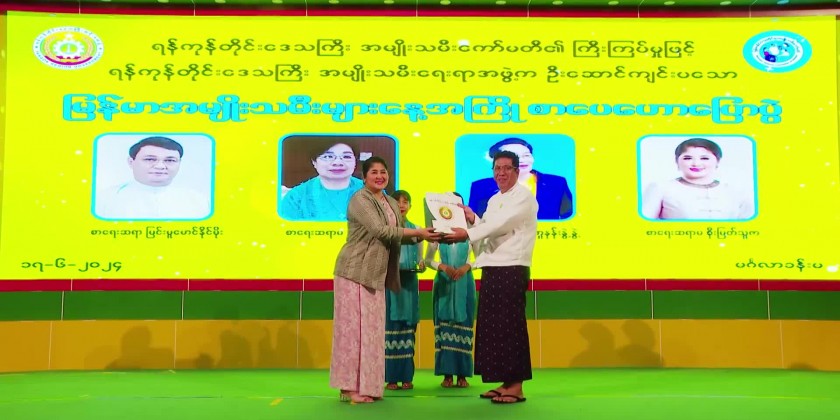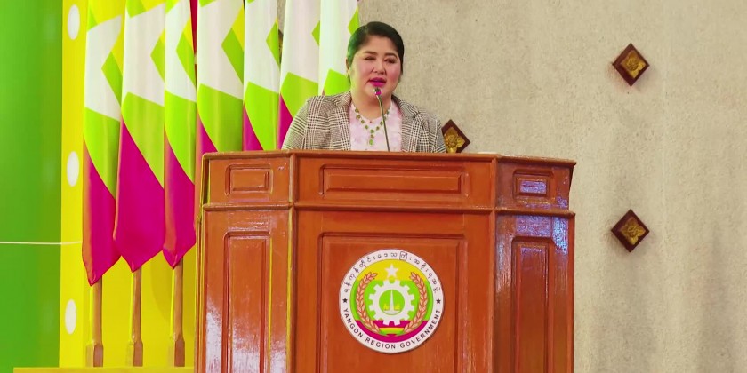 First, the students from the National University of Arts and Culture (Yangon) opened the event with the song “Being proud of Myanmar Women” followed by the opening remark of Yangon Region Chief Minister U Soe Thein.
