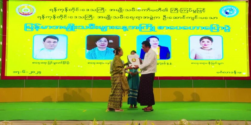 After that, Patron of Yangon Region Committee for Women’s Affairs wife of Yangon Region Chief Minister presented gifts of honor and cash of honor.