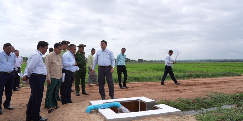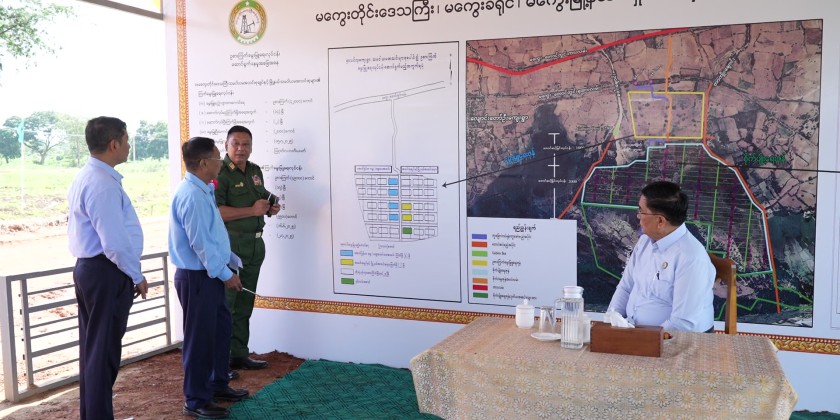 Magway Region Chief Minister U Tint Lwin, along with regional officials, visited the poultry farming zone and mechanized farmland project near Shar Pin Hla village in Magway Township on Friday.