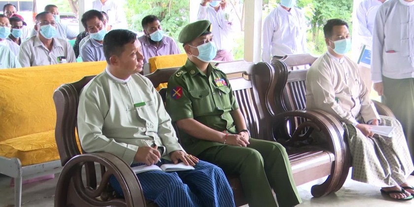 Union Minister for Agriculture, Livestock and Irrigation U Min Naung met the livestock breeding entrepreneurs from Shwe Myo and Kangyi livestock zones in Tatkone Township, Nay Pyi Taw Council Area in the morning on 20th July.
