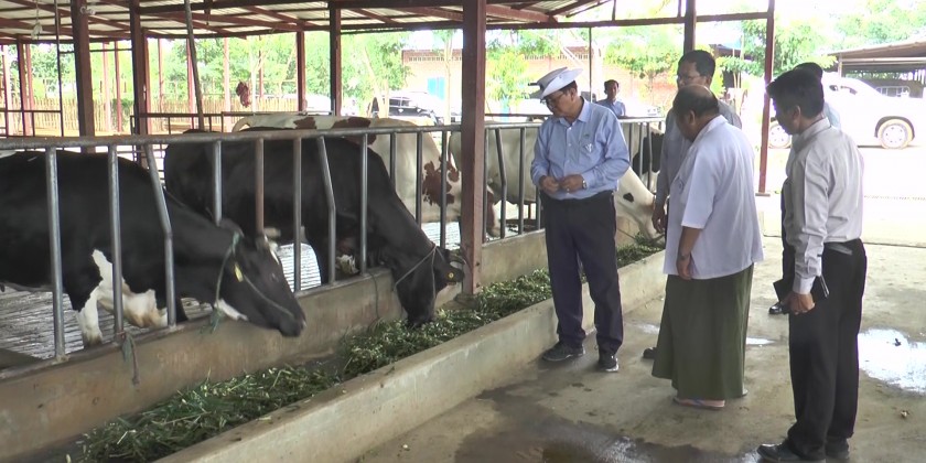 Then, the Deputy Minister and party inspected pig and milch cow breeding at the Fun Hwa Breeding Farm. They continued their inspection at a private pig farm in Kinthar Village, cow breeding farms at the Shwe Myo Breeding Zone, as well as the designated sites for constructing a Bio Safety Level (3) Disease Detection Laboratory and a breeding farm for research purposes.