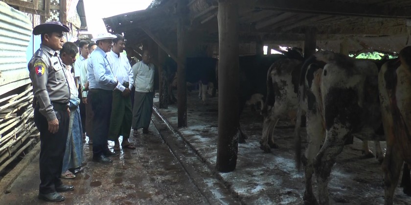 The Deputy Minister inspected the dairy farms and Cotton Mill in Aung Lan. At the District General Administration Office, the Deputy Minister met with the breeders and explained the Government’s efforts for development of livestock sector, along with the plans for market penetration and boosting quality production.