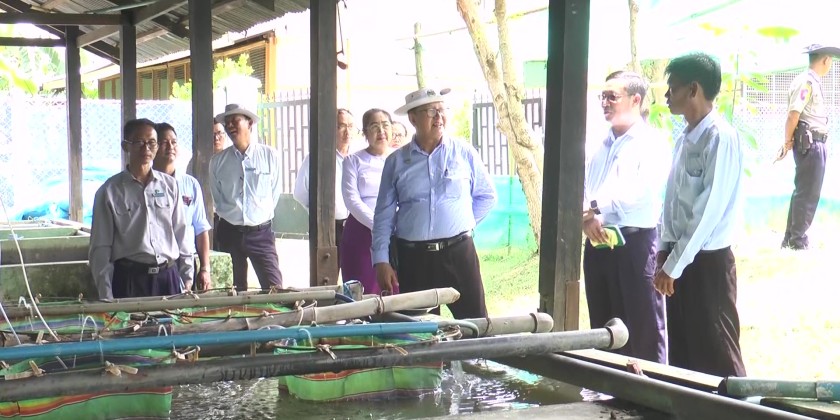 After that, he inspected the strength of Paung Laung Dam, water inflow, overflow of spillway and water distribution and coordinated the needs. At the Yezin Fishery Station, the Deputy Minister inspected a Model Farm on Good Aquaculture Practice, fish breeding pond and nursery ponds and stressed to conduct training courses on Aquaculture, fish breeding and incubation.