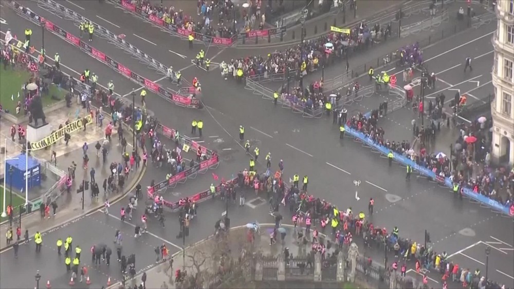 Sifan Hassan won in the elite women's category.Environmental protesters said Friday that they were not planning to disrupt the marathon after two other big sporting events in Britain were targeted by activists over the past week.Some climate activists were seen protesting on the sidelines of the marathon in Westminster.