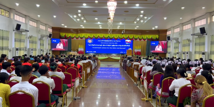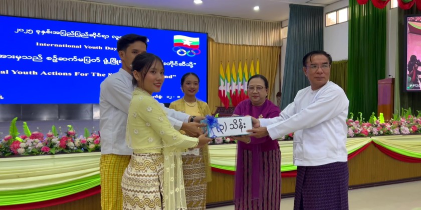 The official International Youth Day 2025 ceremony then took place at the City Hall, attended by Bago Region Youth Affairs Committee Chairman, Chief Minister U Myo Swe Win, and his wife.