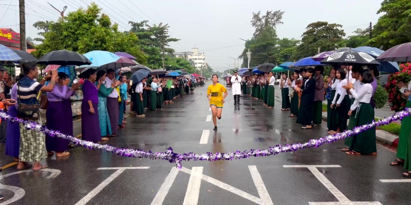 First, Bago Region Social Affairs Minister U Myo Aung fired the starting gunshot, officially opening the race. Male and female long-distance runners from various townships in the region competed along a designated route. They were cheered on enthusiastically by departmental officials, the public, teachers, students, and social organizations lining the route.