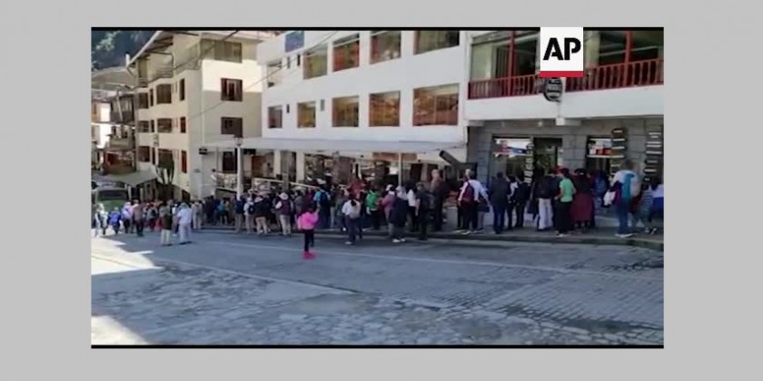Hundreds of tourists blocked the train tracks close to Machu Picchu to protest the fact they cannot enter Machu Picchu since the beginning of the week due to overbooking.