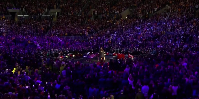A gallery of basketball legends joined thousands of Kobe Bryant fans in Los Angeles on Monday. The "Celebration of Life" memorial at the Staples Center featured an emotional address by Bryant's widow Vanessa.
