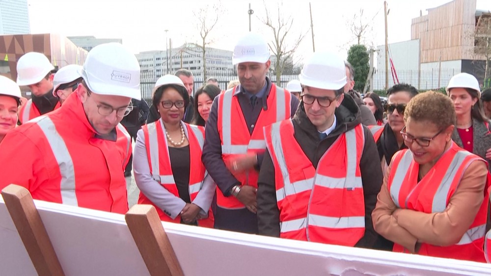 Mayor of Los Angeles, and Mayor of Saint-Denis, visit the Paris 2024 summer Games' Olympic Village.